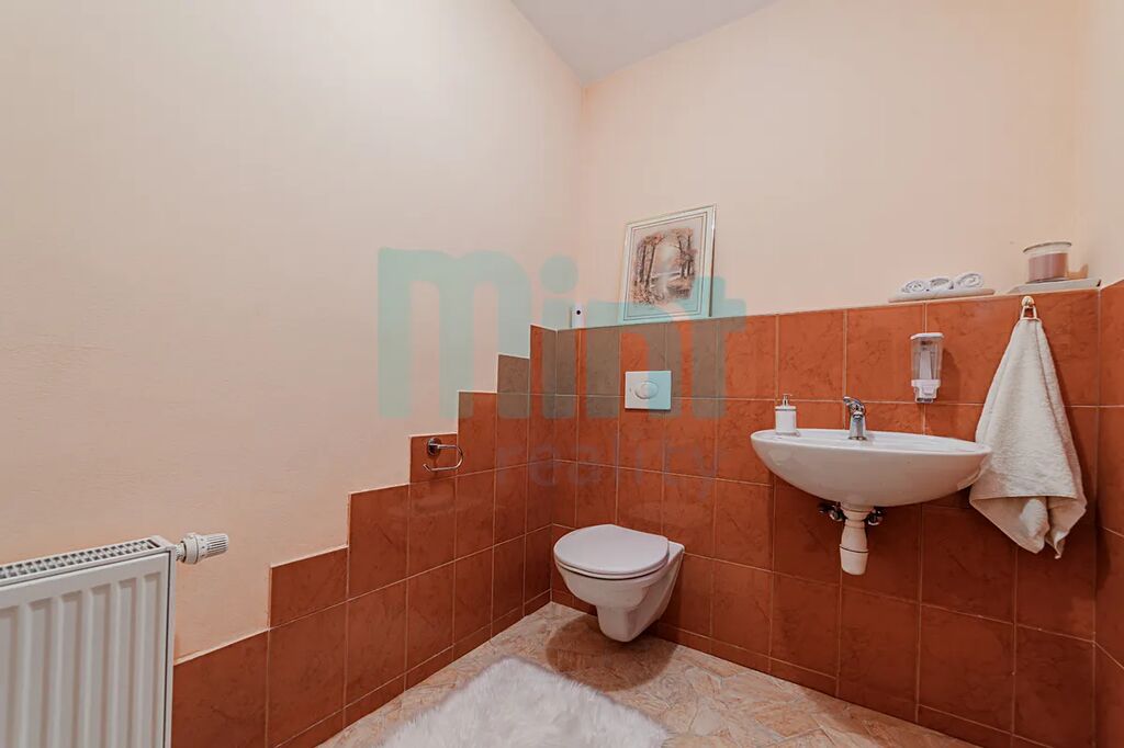Přízemí domu je prakticky uspořádané a zahrnuje vstupní část/chodbu, obývací pokoj spojený s kuchyní, a samostatnou toaletou. Dále se zde nachází místnost o rozměrech 3x3 m, která díky připraveným rozvodům vody, elektřiny a odpadů na sprchu i vanu (včetně stropního podhledu) přímo vybízí k vybudování komfortní koupelny v přízemí domu. V případě potřeby však může sloužit také jako další plnohodnotný pokoj.