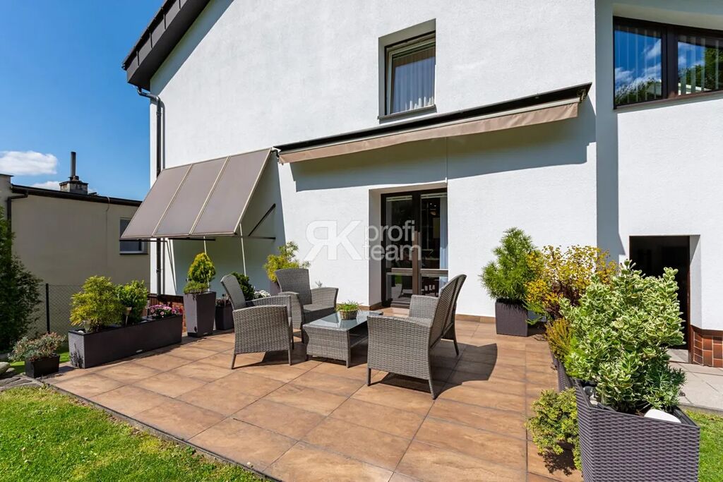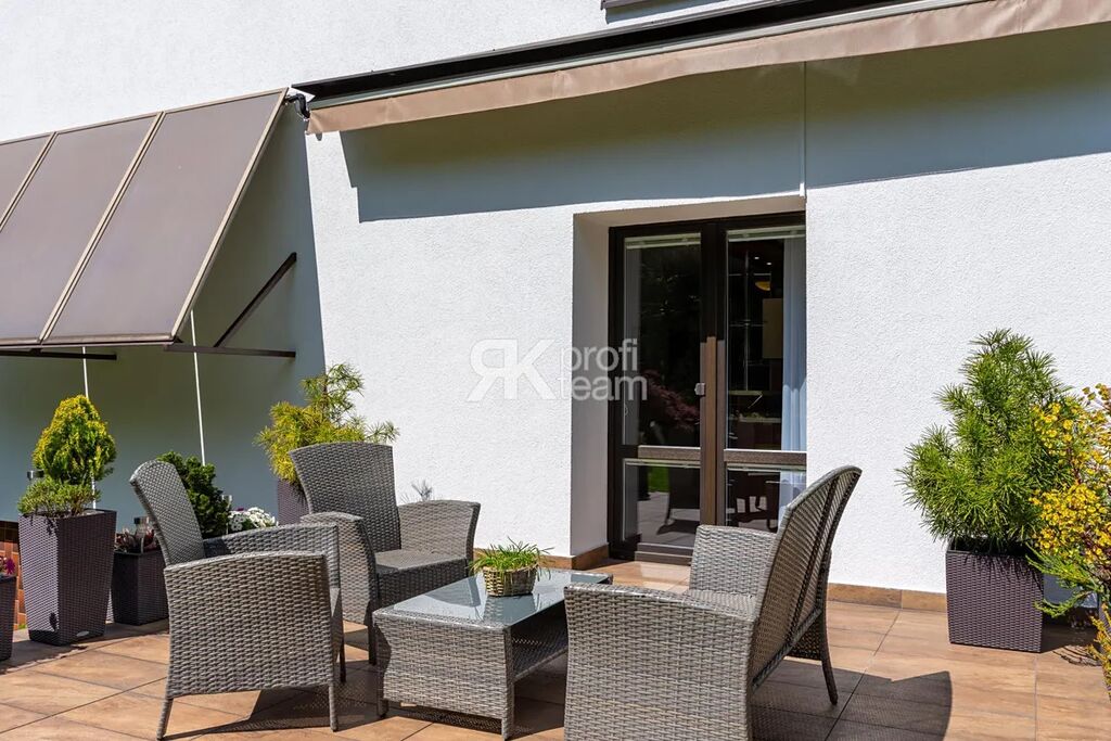 - Z obývacího pokoje je přímý vstup na terasovou část a zahradu orientovanou na jihozápad ideální pro grilování, relax i rodinná setkání.