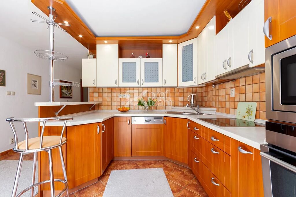 - Vybavená kuchyně s vestavěnými spotřebiči (myčka, lednice, trouba, sklokeramická deska)