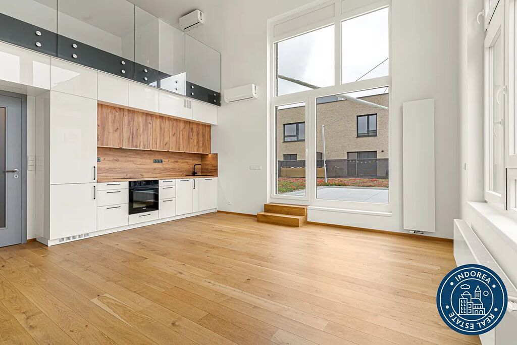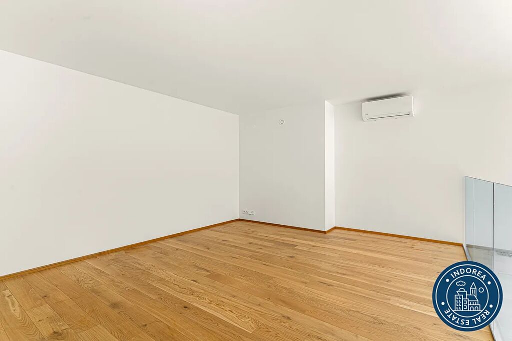 Zcela nový a zatím nikým neobývaný loftový byt o celkové ploše 54 m2 + terasa 13 m2 je vybavený dvěma klimatizačními jednotkami, novou kuchyňskou linkou se spotřebiči Siemens, pračkou a v předsíni také plnohodnotnou vestavěnou skříňí.