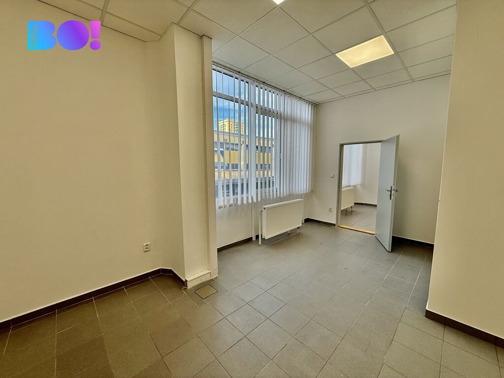 Kancelář je situovaná v klidné části administrativní budovy s výbornou dostupností, pár kroků od hlavní třídy a všech služeb. Interiér je laděn do čistého, moderního stylu – keramická dlažba, podhledové osvětlení, velká okna s vertikálními žaluziemi a decentní barevnost vytvářejí profesionální, ale zároveň příjemné pracovní prostředí.