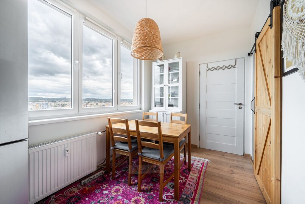 Nabízíme vám k pronájmu prostorný byt o dispozici 3+1 a výměře 66 m², který se nachází ve 13. patře domu v Zachariášově ulici, jen pár kroků od samotného centra města. Byt prošel v roce 2021 kompletní rekonstrukcí klíčových prvků a je ihned připraven k nastěhování. Největší předností je dechberoucí panoramatický výhled na celé centrum Českých Budějovic, který si užijete každý den.