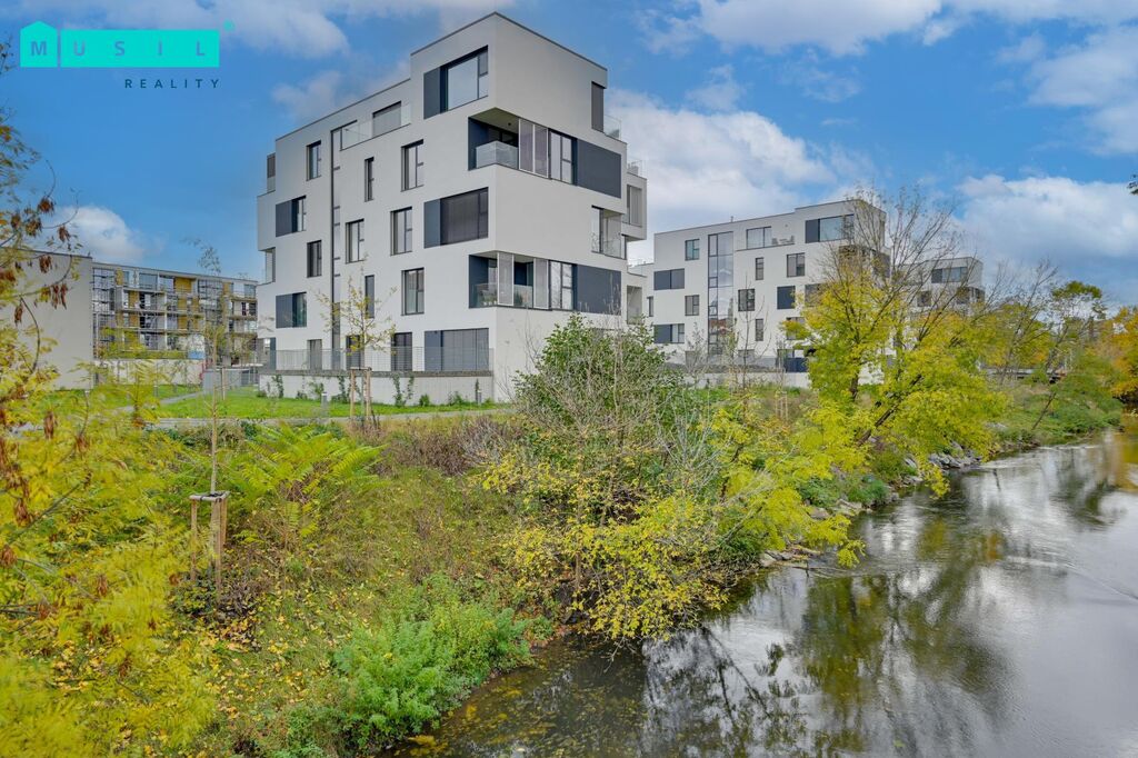 Nově vzniká také soukromá promenáda kolem řeky s lavičkami o prostorem pro relaxaci a ve vnitrobloku bude do konce roku 2025 založen park.