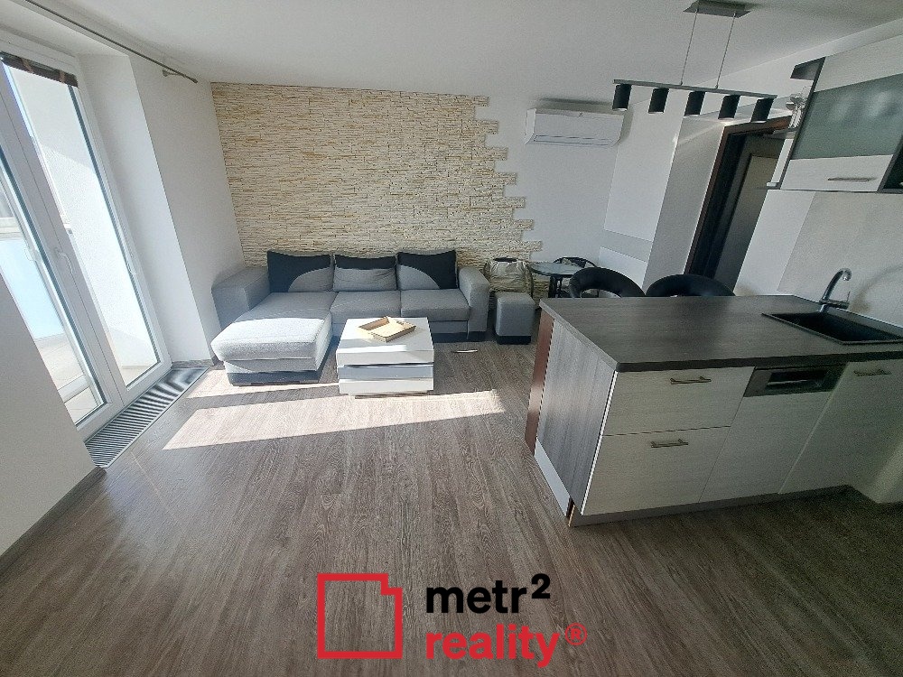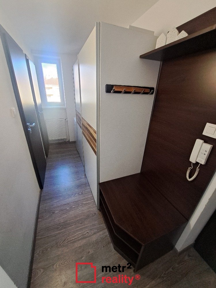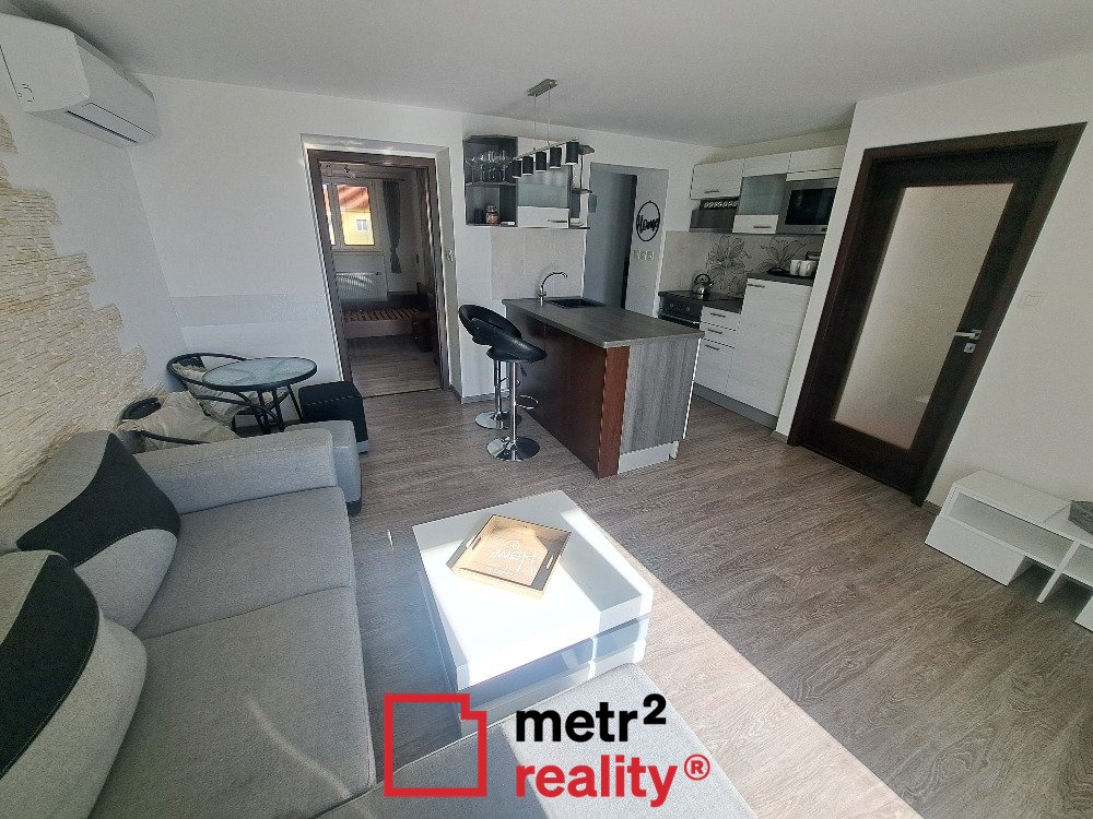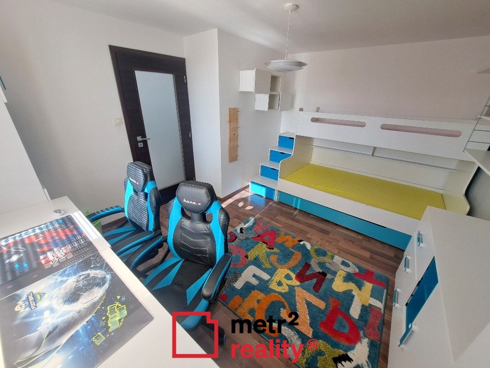 Byt je kompletně zařízený. Ze vstupní chodby s předsíňovou stěnou a úložnou šatní skříní se vchází do prostorné koupelny s vanou, kde je podlahové vytápění a přídavný infrazářič. Z chodby můžete vstoupit na samostatnou toaletu, či pokračovat dále do obývacího pokoje s kuchyňským koutem. V chodbě je rovněž umístěna pračka a plynový kotel, které jsou skryty, aby vizuálně nenarušovaly obytný prostor. Kuchyňská linka je kompletně vybavena vestavěnými spotřebiči (myčka, indukční varná deska, digestoř, mikrovlnná trouba, el. trouba) také nádobím. Z obývacího pokoje je vstup do ložnice, která je vybavena šatní skříní, komodou a manželskou postelí a dvěma nočními stolky. Z obývacího pokoje je dále vstup do dětského pokoje, který je zařízen patrovou postelí, dvěma stoly s otočnými židlemi a skříní. Veškerý výše zmiňovaný nábytek lze po dohodě s majitelem odstěhovat. Topení je zajištěno samostatným, pravidelně servisovaným kondenzačním plynovým kotlem, který slouží k vytápění a ohřevu teplé vody. Nespornou výhodou v letních horkých dnech je klimatizace, která je umístěna v obývacím pokoji. K bytu náleží sklep a sklepní uzamykatelná kóje s výměrou 5 m2. Parkování je možné přímo před vchodem do domu, kde je dostatek volného místa k parkování. Dům je čistý, s pravidelnou úklidovou službou, kompletně zateplený včetně zateplených půdních prostor. Nájemné činí 13 500,- Kč / měsíc + zálohy na služby ve výši 1 000,- Kč / měsíc. Plyn a elektřina bude přepsána na nájemníka. Požadovaná jistota ve výši dvou měsíčních plateb. Byt je k dispozici po předchozí domluvě již od 1.12.2025. Pronajímatel preferuje dlouhodobý pronájem.