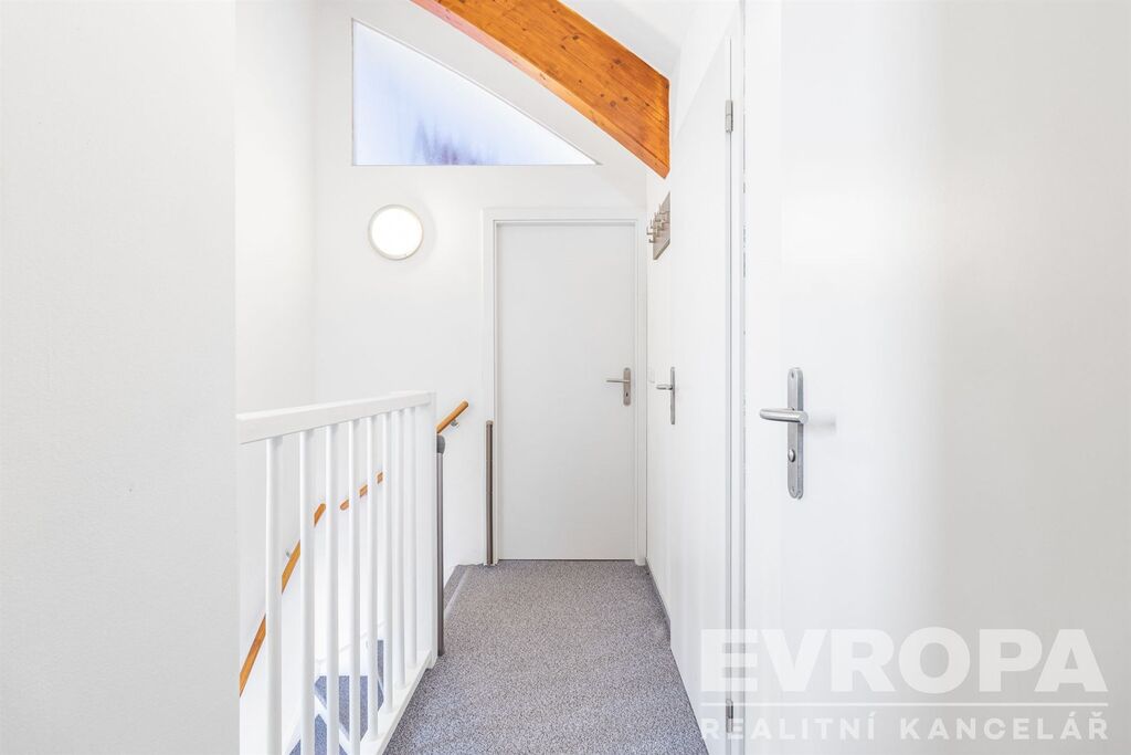 V horním patře se nachází dvě ložnice, koupelna, samostatné WC a druhá úklidová místnost, která může sloužit i jako menší úložný prostor.