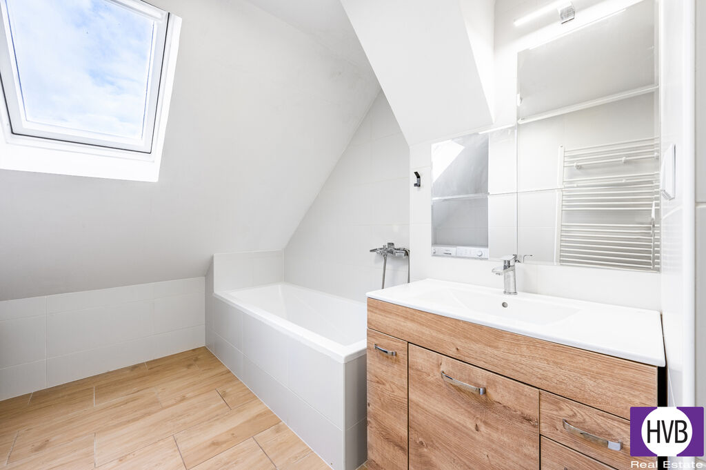 Dispozice - zádveří, vstupní chodba, tři obytné místnosti, příprava na koupelnu a toaletu. Ve vrchní části nalezneme plně vybavenou kuchyň s jídelní částí, obývací pokoj, ložnici, koupelnu s vanou a sprchovým koutem, WC.