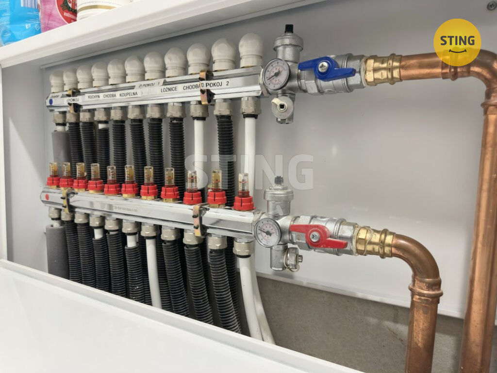 O příjemné teplo se stará elektrokotel Vaillant s podlahovým topením po celém domě. Atmosféru domova doplňují krbová kamna v obývacím pokoji, případně tepelné čerpadlo vzduch–vzduch švédské značky IVT, které v létě poslouží jako klimatizace. V jižní ložnici je navíc klimatizace Sinclair, kterou lze v zimě využít i k přitápění.