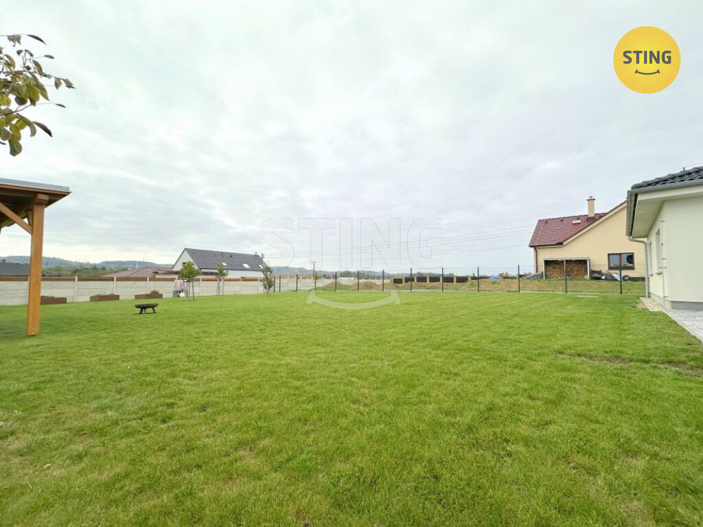 Představte si, že se nastěhujete do domu, kde už je všechno připravené – pěkná novostavba, moderní vybavení, útulná atmosféra a prostorná zahrada kolem. Přesně to nabízí tento stylový přízemní rodinný dům 4+kk o užitné ploše 109 m2, postavený v roce 2020 na krásném, rovinatém pozemku o velikosti 1 185 m2.
