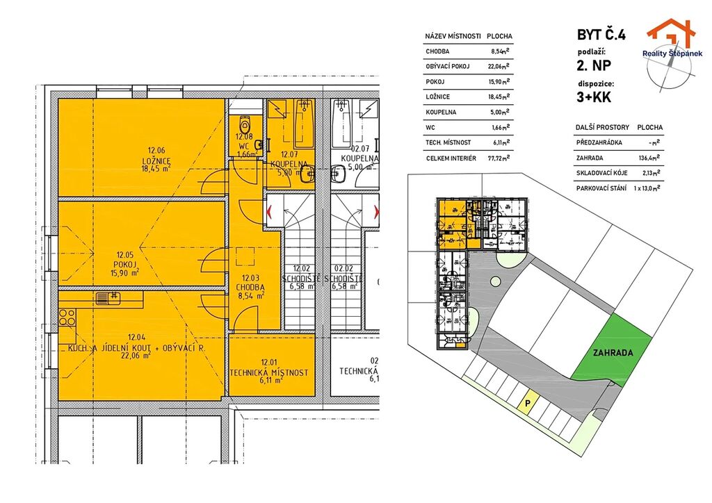 Bytová jednotka č. 4 s dispozicí 3+kk o užitné ploše 77,7 m² se nachází ve 2. NP novostavby bytového domu v malebné obci Kojákovice nedaleko Třeboně. K bytu je možné užívat soukromou zahradu o ploše 136 m², která je součástí oploceného areálu. V ceně je zahrnuta skladovací kóje a parkovací stání na pozemku.