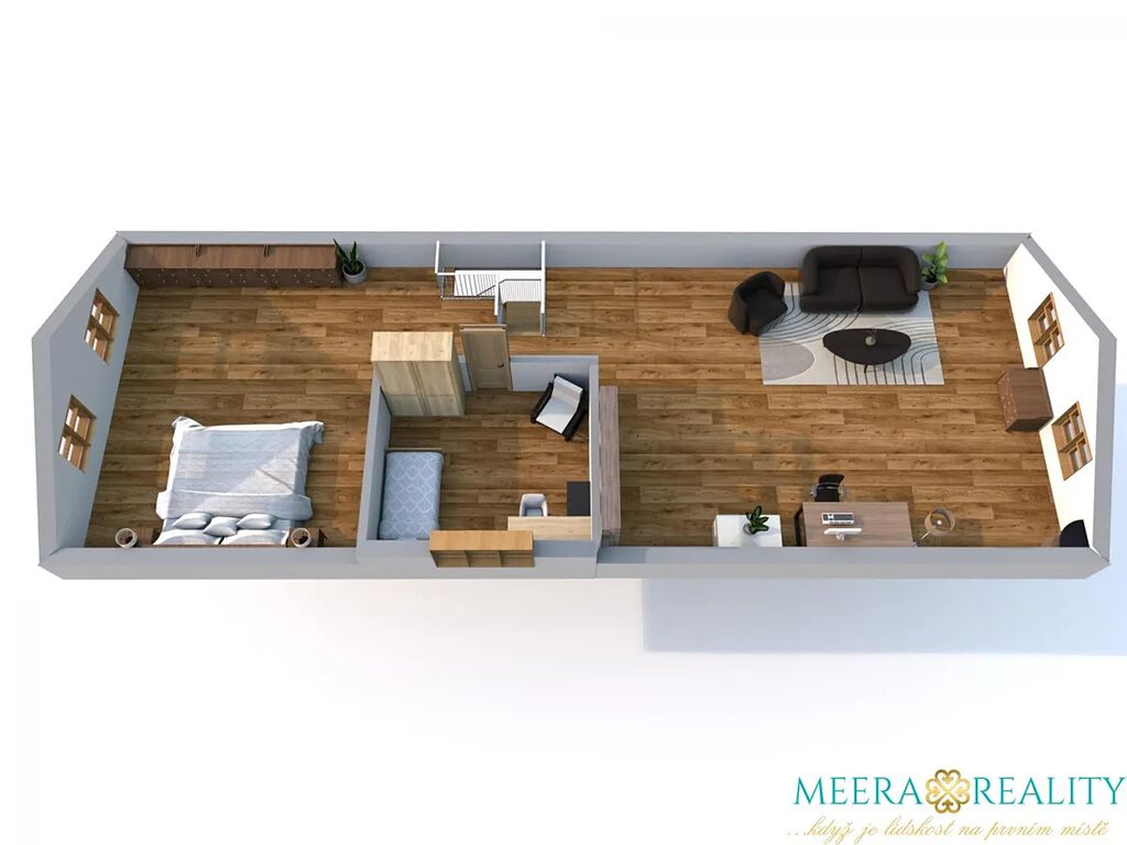 Díky své dispozici i poloze nabízí velký potenciál k vytvoření útulného rodinného sídla nebo rekreačního domu podle vlastních představ.