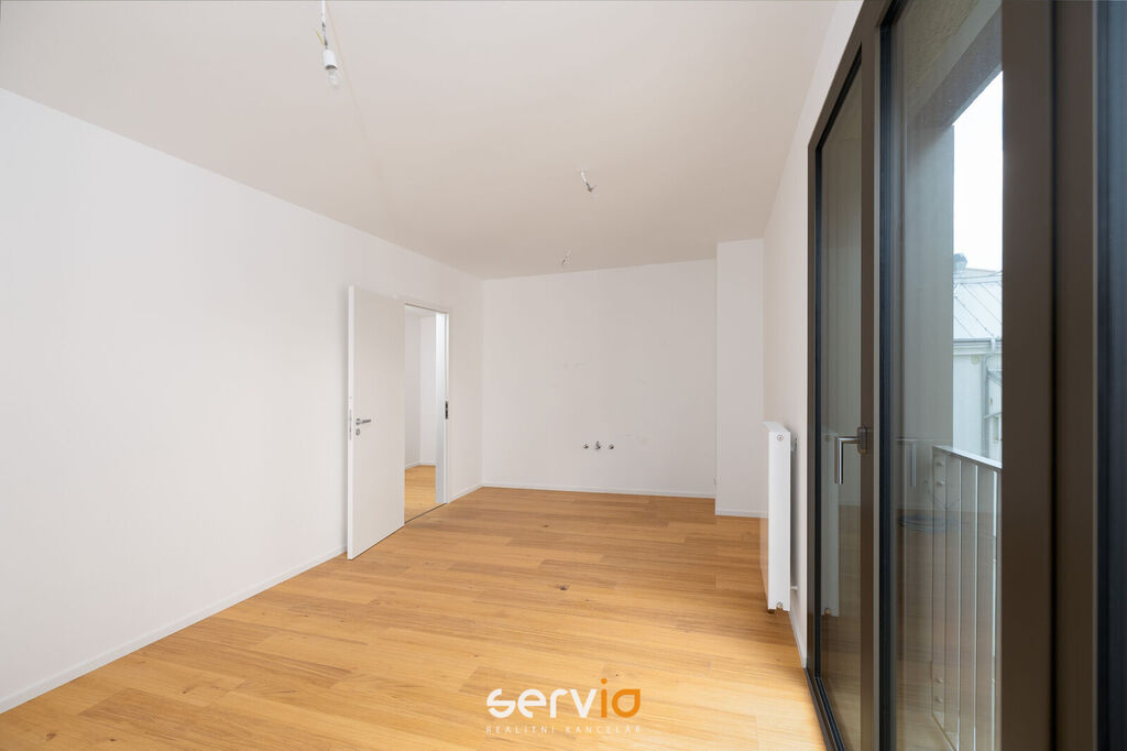 Hledáte bydlení v blízkosti centra města, se službami pětihvězdičkového hotelu, klubovým charakterem, pestrou nabídkou služeb výhradně pro rezidenty, umístěné v živém vnitrobloku plném zeleně? Pekárenský dvůr není jen bydlení, je to životní styl. Ten váš. Nabízíme k pronájmu luxusní apartmán 2+kk o celkové ploše 41,4 m2 (plus 1,8 m2 sklepní kóje), který je situovaný v 6.NP nově vybudovaného objektu Pekárenský dvůr - Eduardův dům. Dispozičně je apartmán řešen obývacím pokojem s kuchyňským koutem, ložnicí, koupelnou s toaletou a předsíní.
