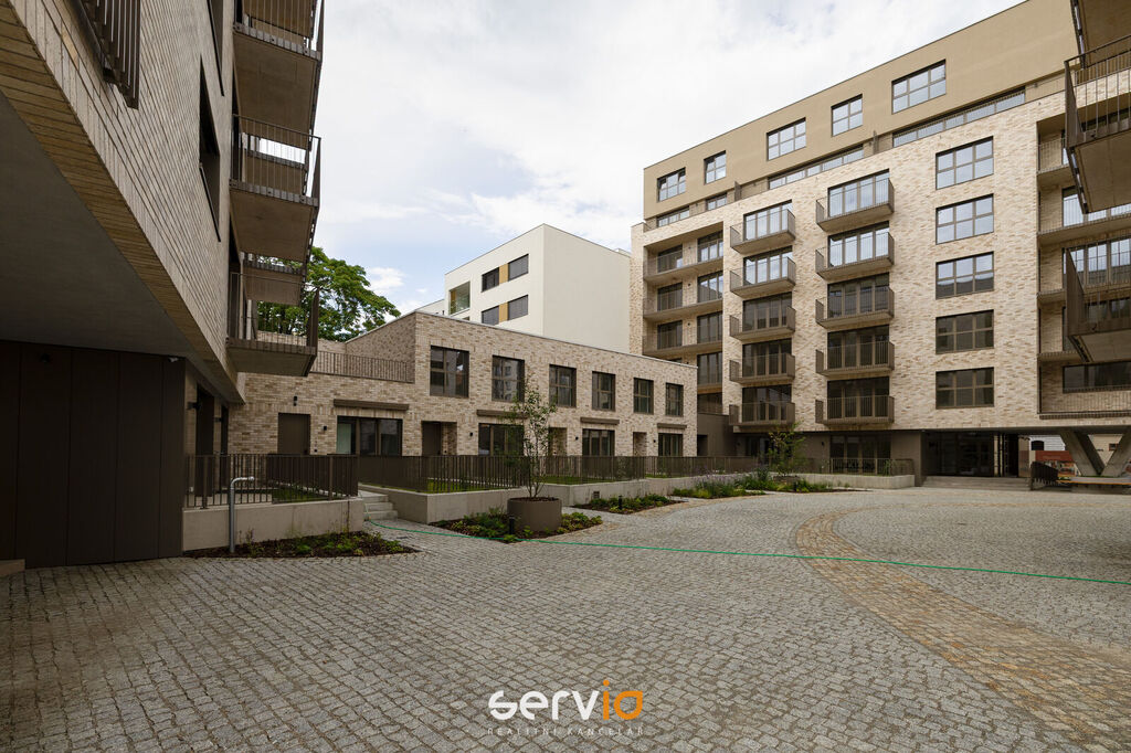 Parková úprava více než 2 600 m2 volné plochy vnitrobloku je dílem renomovaného zahradního ateliéru Krejčiříkovi, podepsaného např. pod návrhy zahrad vily Tugendhat či hospitalu Kuks.