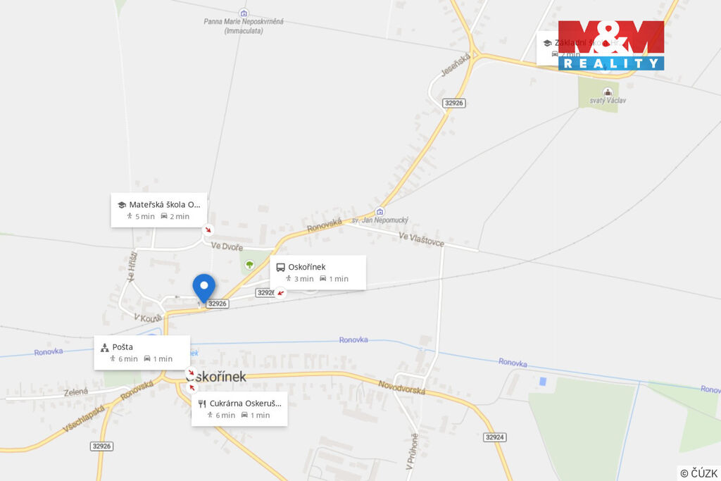 Dobrá dopravní dostupnost - autobusová i vlaková zastávka v blízkosti. V obci Oskořínek je také MŠ, pošta a obchod se smíšeným zbožím. ZŠ je v sousední obci Hrubý Jeseník.