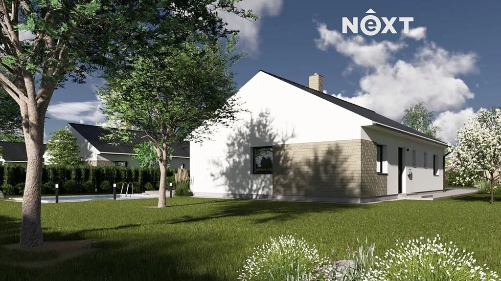 napojení domu na IS včetně dešťové kanalizace do vsaku, dvojitá základová deska včetně hydro-radonové izolace, hrubá stavba vč. vstupních dveří a oken (trojsklo), komín, kompletní střecha vč. klempířských prvků, provedení soklu, kompletní zateplená fasáda včetně akrylátové omítky, provedení viditelných částí střechy (podbití) palubkovým obkladem 15 mm vč. lazury. Vnitřní dokončení dle standartu, který vám rádi zašleme. Jednoduše řečeno stavba je na klíč včetně napojení na IS. V ceně není kuchyňská linka!