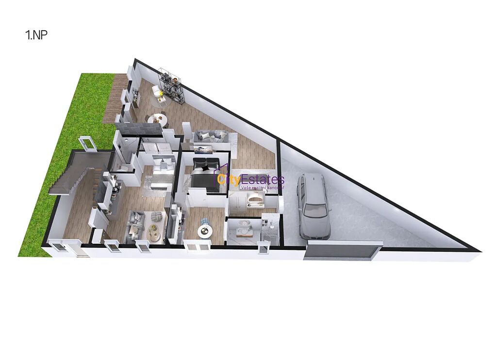 Nabízíme k prodeji nový třípodlažní dům, postavený na půdorysu původně rodinného domu, kde je možné dokončit vnitřní prostory buď v původním záměru jako dva byty o velikosti 67,9 a 86,7 m2 + terasy 89,4m2 v patrech. Přízemí pak propojené s garáží s celkovou plochou 161,8m2 užívat jako komerční obchodní/skladovací prostor.