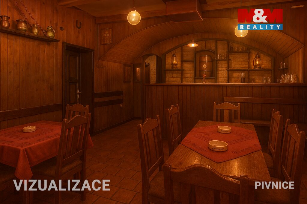 Součástí nemovitosti je také provozovna v přízemí o ploše 39 m², která dříve sloužila jako pivnice. K dispozici jsou další skladovací prostory a sklep, ideální pro podnikání nebo rozšíření obytné části.