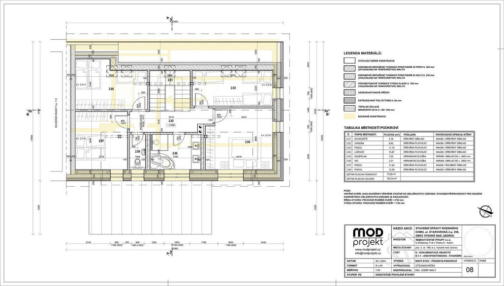 Podkroví (72,88 m²): ložnice + 3 pokoje / pracovna, koupelna, samostatné WC.