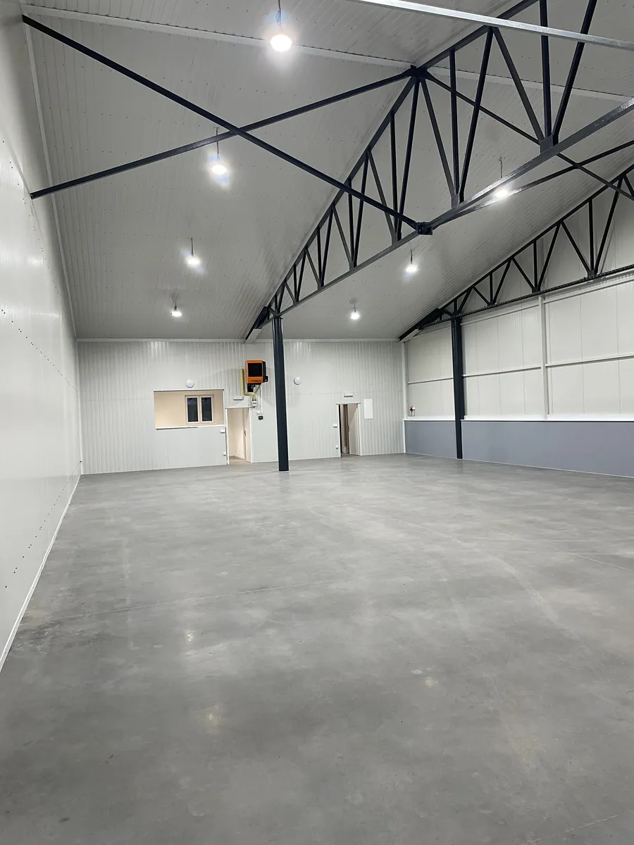Hala temperována plynovým teplovzdušným agregátem značky Robur a disponuje sekčními vraty HÖRMANN. Vysoká využitelná výška skladu umožnuje umístění regálů v hale, tedy skladování ve více výškových úrovní.