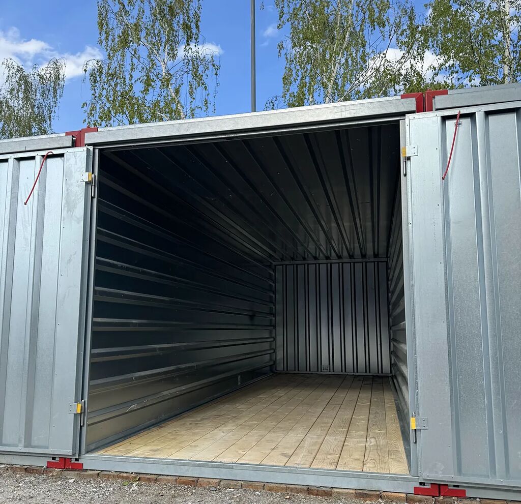 Dvoukřídlá vrata 2,2 m x 2,2 m. Kontejnery jsou přístupné autem až ke dveřím s dostatečným prostorem pro manipulaci. Jedná se o kvalitní skladové kontejnery české výroby určené pro skladování.