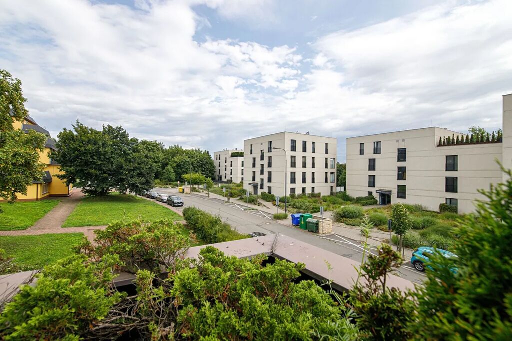 K bytu náleží vnitřní garáž s dálkově ovládanými vraty a prostorná terasa s markýzou.