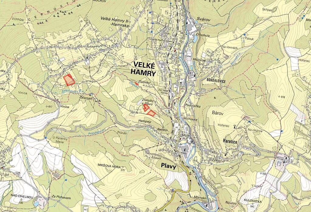 k. ú. Velké Hamry: parcely č. 2577, 2578, 2579