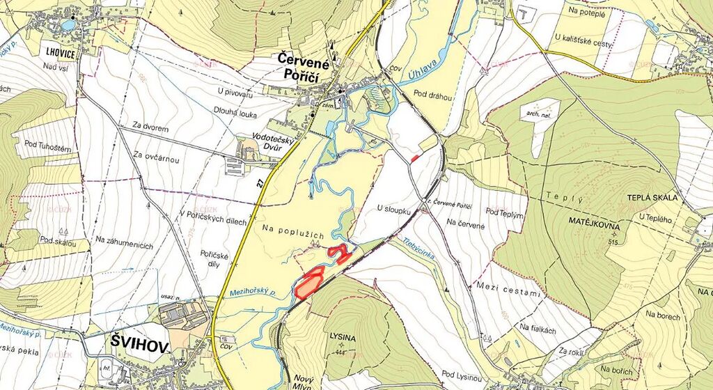 Nabízím k prodeji soubor pozemků ve výlučném vlastnictví o celkové výměře 26 107 m², situovaných v katastrálním území Červené Poříčí, okres Klatovy. Pozemky jsou zapsány na listu vlastnictví č. 543 a tvoří je parcely č. 749, 750, 754, 758/1 a 837/5.