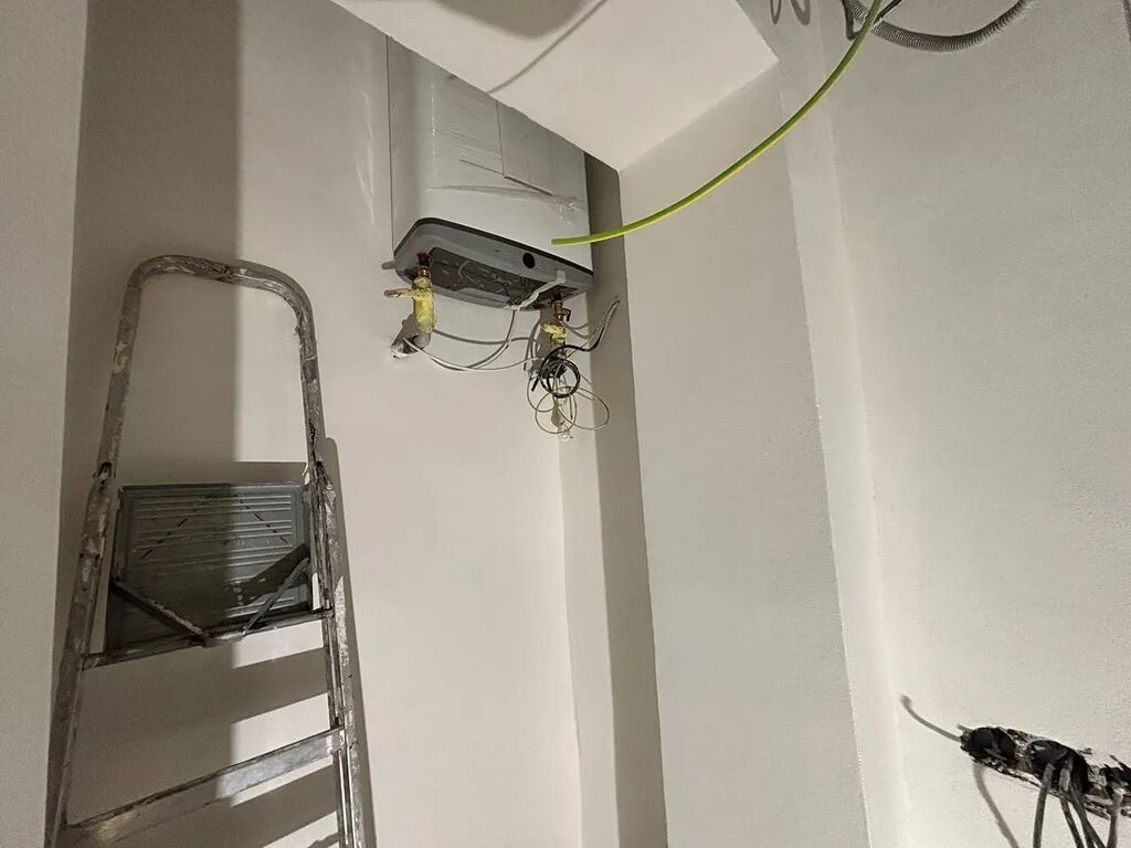 V této chvíli probíhá v prostoru rekonstrukce (nové dveře, topné radiátory, dlažba, elektroinstalace, malá kuchyňka, bojler, bílé stěny).