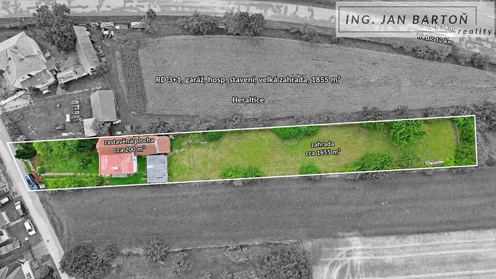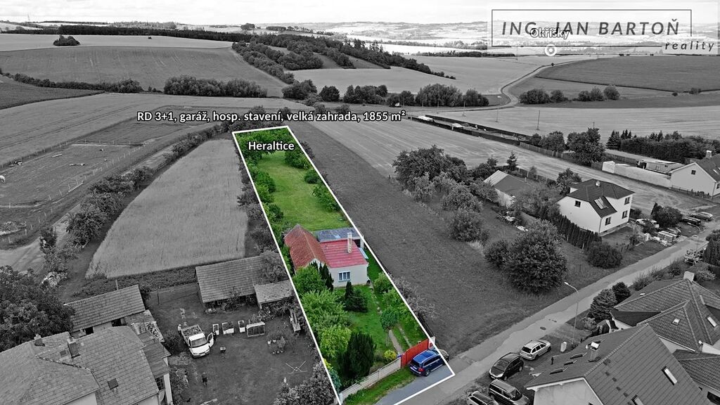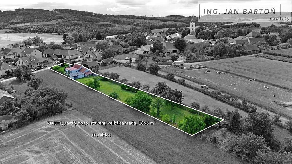 Nabízím k prodeji RD s velkým pozemkem (celkem 1855 m²) v Heralticích nedaleko Okříšek, okr. Třebíč. Krásné, klidné místo na okraji obce, mimo hlavní silnici. Ideální orientace většiny oken k jihu. Za domem garáž a další hospodářská stavení, zahrada a sad s ovocnými stromy.