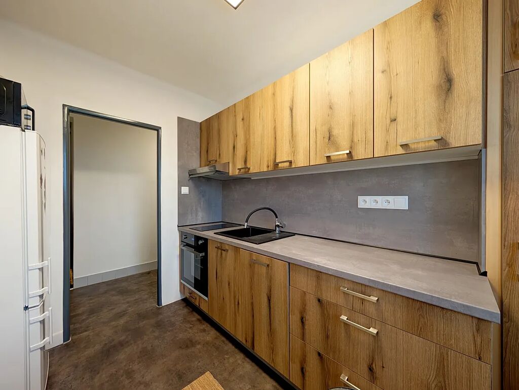 Tento udržovaný byt disponuje novou kuchyňskou linkou včetně spotřebičů, vkusnou koupelnou po rekonstrukci, prostornými pokoji, balkonem a také sklepem.