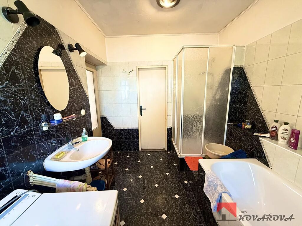 V patře je k dispozici půda, která přímo vybízí k vestavbě a rozšíření o další obytné místnosti například ložnice či pracovnu.