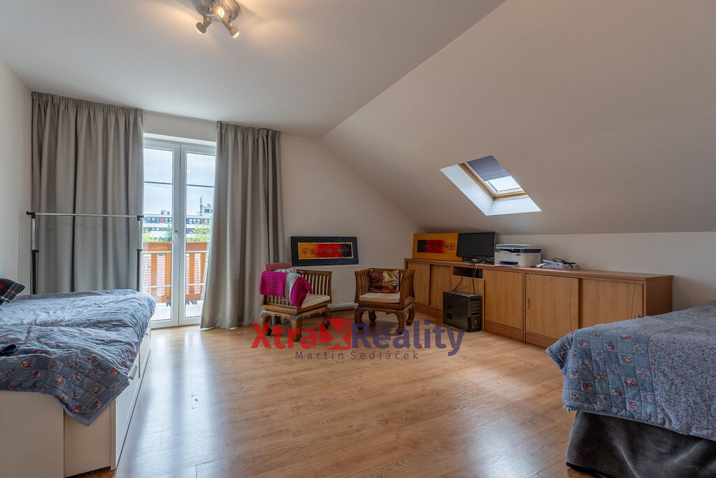 Pokud vystoupáme do 3. nadzemního podlaží, ocitneme se v chodbě, ze které se dostaneme do 2 dětských pokojů, ložnice se vstupem na balkón, pracovny a koupelny s umyvadlem, WC a sprchovým koutem.