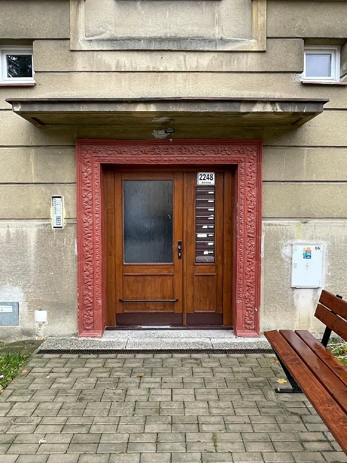 Jedná se o byt umístěný v I. nadzemním podlaží zděného domu. Byt je bez balkonu. V předsíni bytu se nachází vstup do koupelny, vstup na WC a vstup do komory určené k uskladnění věcí.