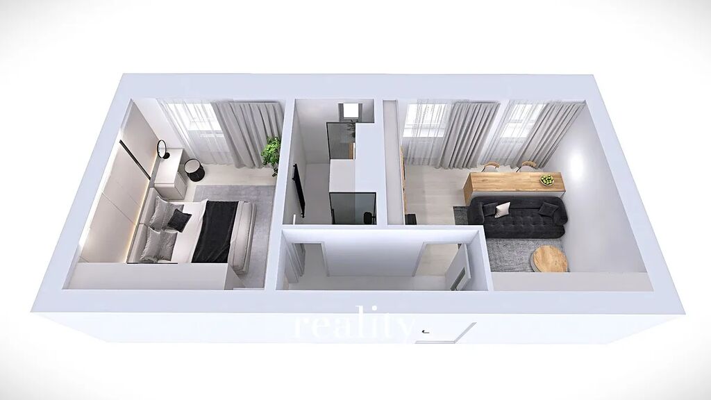 Byt byl využíván a je možné ho využívat i nadále v současném stavu. Pokud se nový majitel rozhodne pro rekonstrukci a bude si chtít přizpůsobit interiér vlastním představám a potřebám, přikládáme i vizualizaci budoucího stavu.