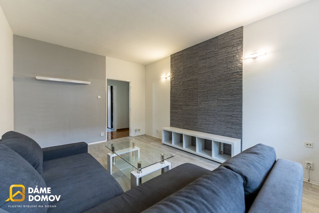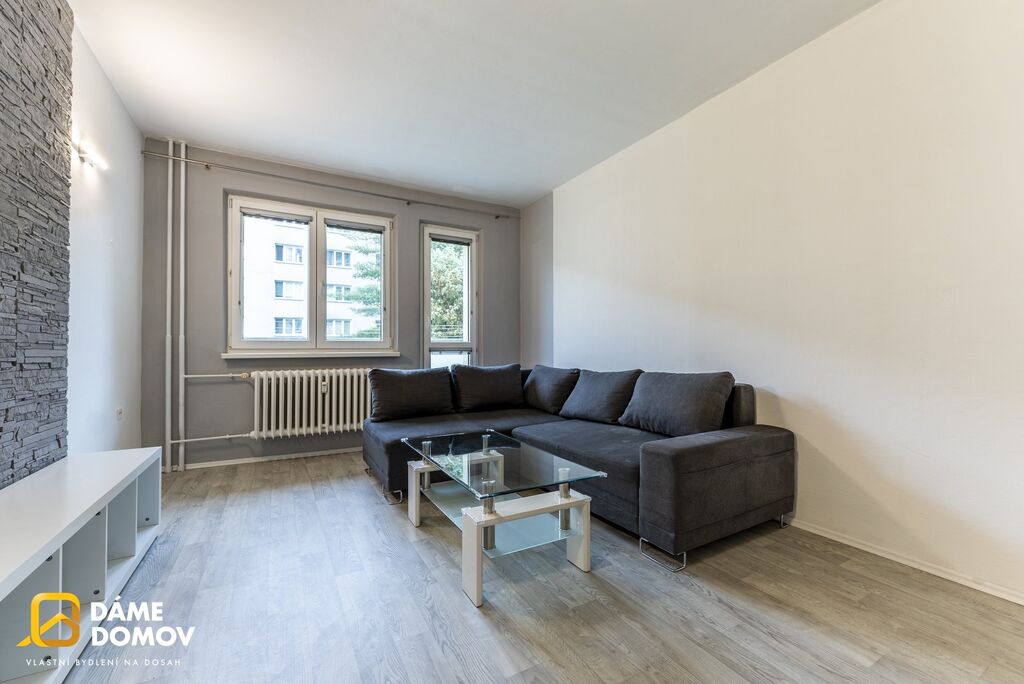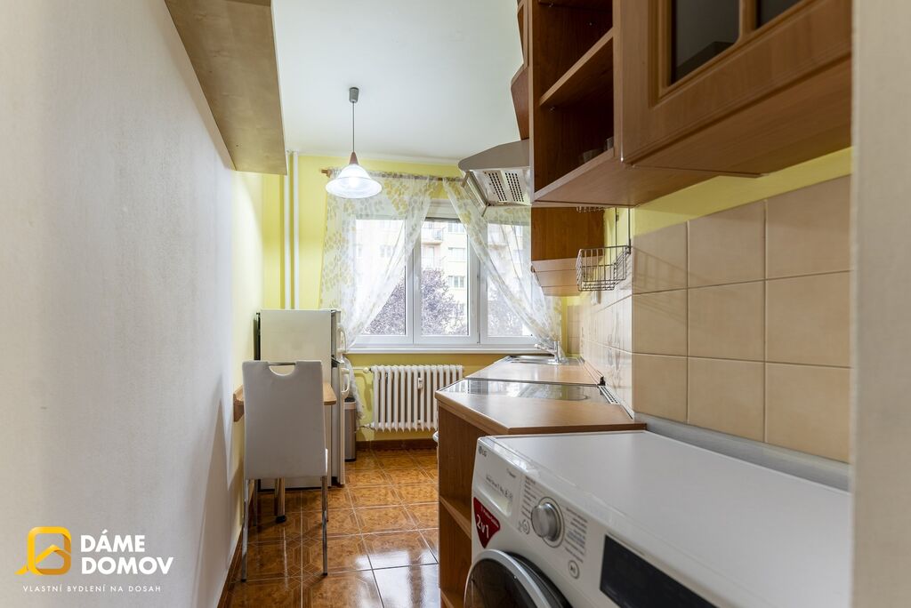 Praktické řešení prostoru nabízí prostorný obývací pokoj, samostatnou ložnici, kuchyň s jídelním koutem, koupelnu s vanou a WC.