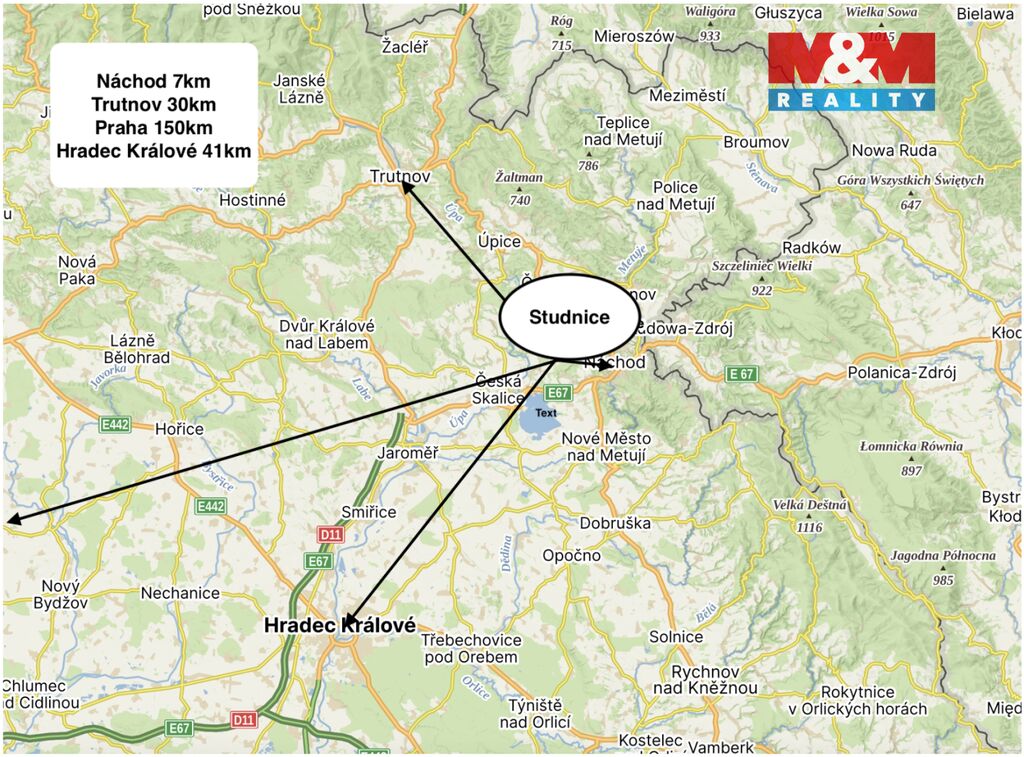 V okolí se nachází vodní nádrž Rozkoš a řada zámků (Náchod, Opočno, Nové Město n. M.).