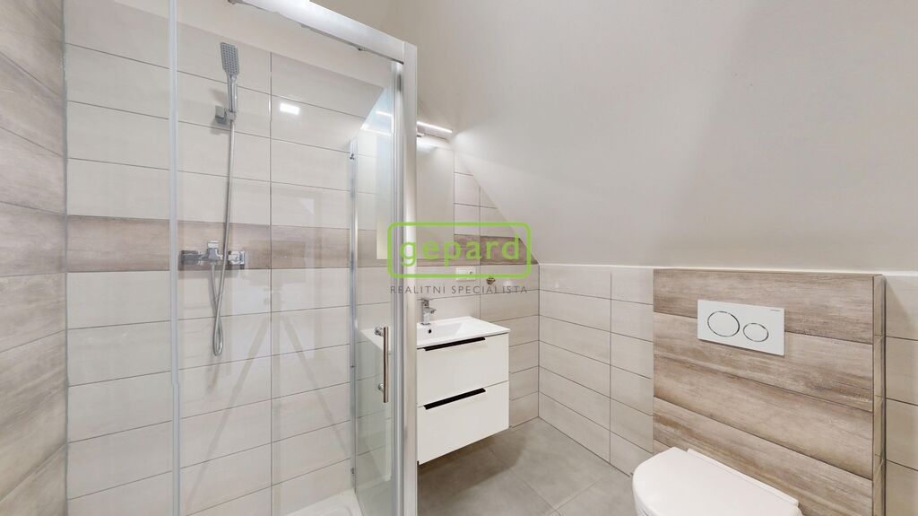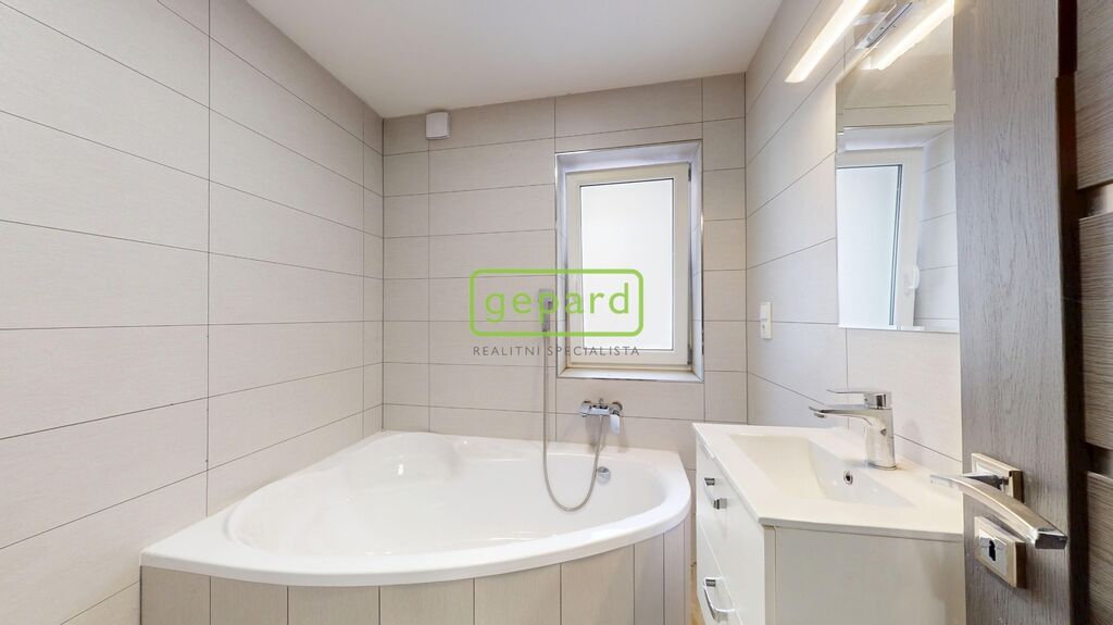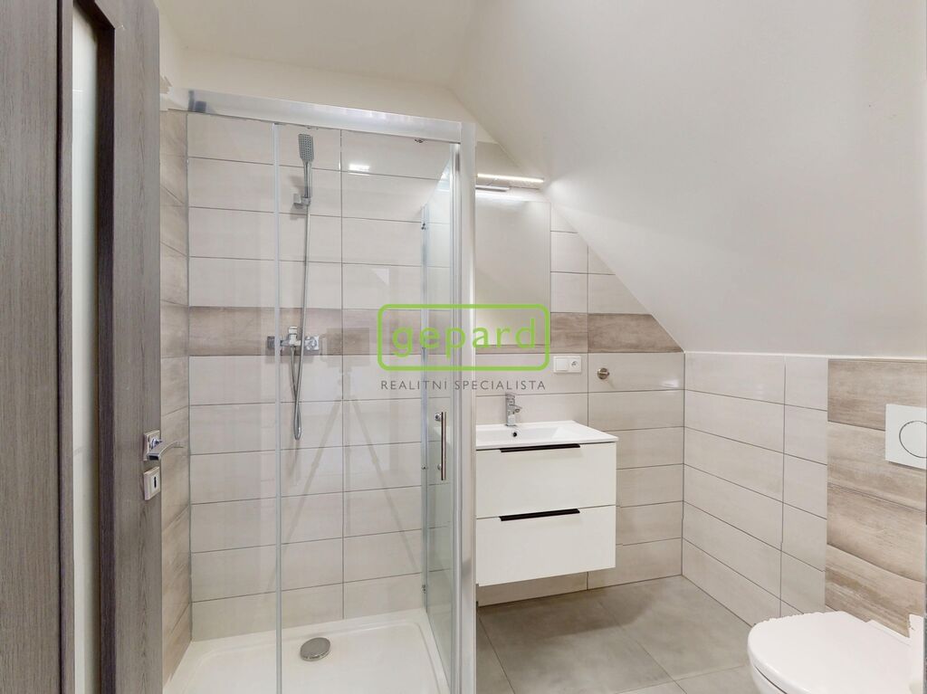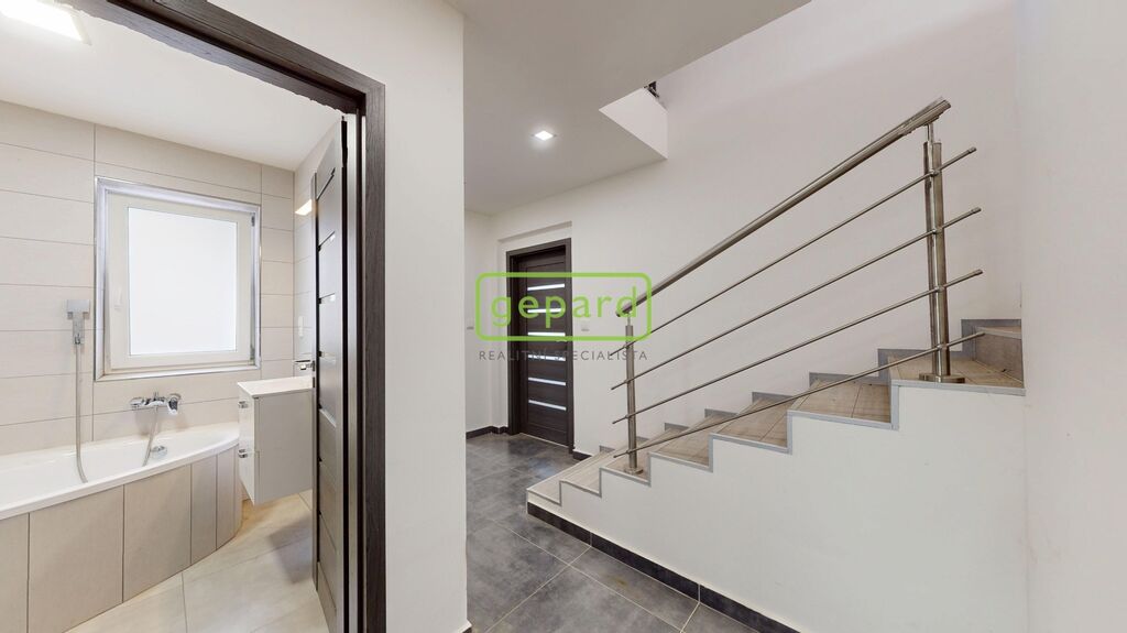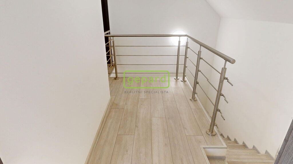Nemovitost je napojena na veřejný vodovod, odpad je řešen jímkou. Topení zajišťuje elektrický kotel, teplá voda je ohřívána elektrickým bojlerem. Střešní krytina je z pálené tašky, podlahy jsou plovoucí. Dům je dvoupatrový – v přízemí se nachází prostorná kuchyň s kvalitní kuchyňskou linkou, indukční deskou, troubou, myčkou a digestoří, dále koupelna s vanou, WC a umyvadlem a vstupní chodba. V druhém nadzemním patře jsou dva pokoje a druhá koupelna se sprchovým koutem, WC, umyvadlem a prostorem pro pračku a myčku. Dům je zčásti podsklepený, kde jsou umístěny technické prostory s elektrickým kotlem a bojlerem.