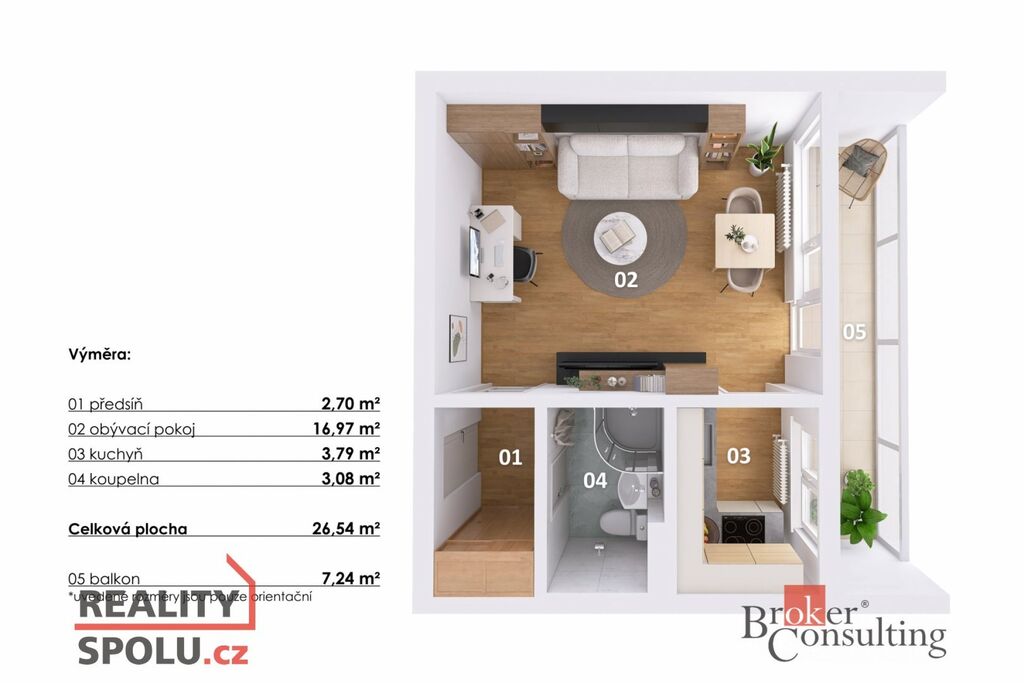 Okna jsou směrem na jiho-západ, byt je díky tomu prosvětlený i v pozdějších hodinách.