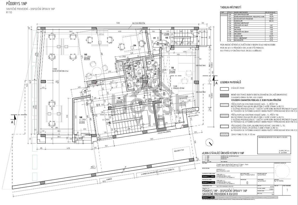 Třípodlažní objekt o celkové užitné ploše 616 m² prošel v roce 2009 kompletní rekonstrukcí a dnes nabízí komfort, moderní technologie i dostatek denního světla. V budově se nachází 10 kanceláří s celkovou plochou 372 m², které lze díky otevřenému uspořádání dále členit dle potřeb budoucího majitele. K dispozici je také 12 skladových a technických místností (131 m²), 8 toalet, 1 koupelna a komunikační prostory o rozloze 113 m².
