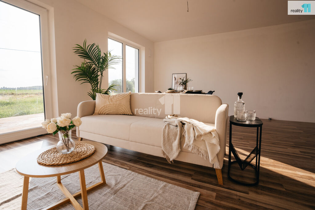 Novostavbu v energetické třídě B, což zajišťuje nízké náklady na vytápění a provoz domu. Vytápení je řešeno tepelným čerpadlem s podlahovým topením, čímž dochází k úspoře prostoru, voda je vedena městským vodovodem a nechybí napojení na kanalizaci. Pozemek nabízí možnosti pro relaxaci či menší zahradní úpravy, přičemž pohodlí zajišťuje i dostatečný počet parkovacích míst - celkem dvě. Interiéry jsou hotove kvalitní laminátové podlahy, dlažba, obklad. Dům je dokončený, jen čeká na vás.
