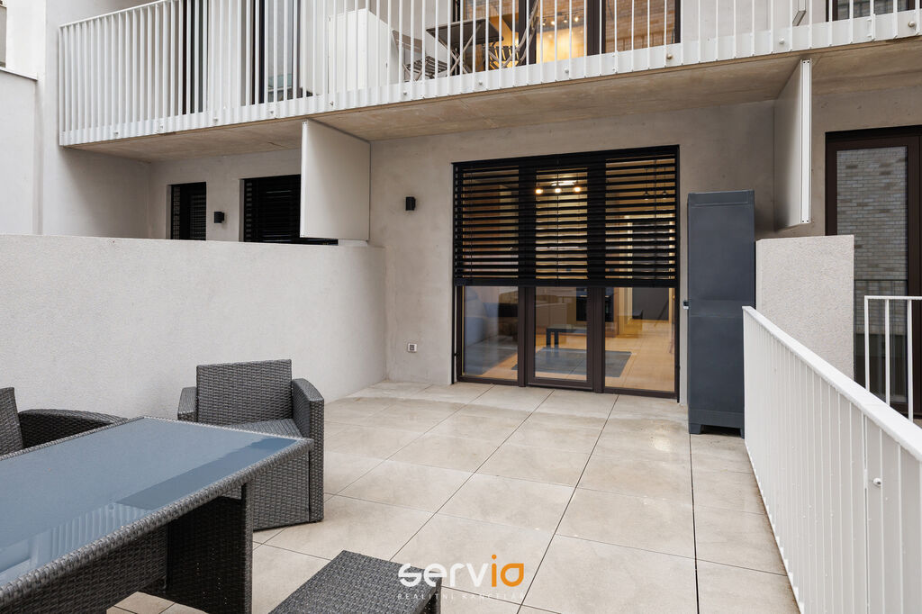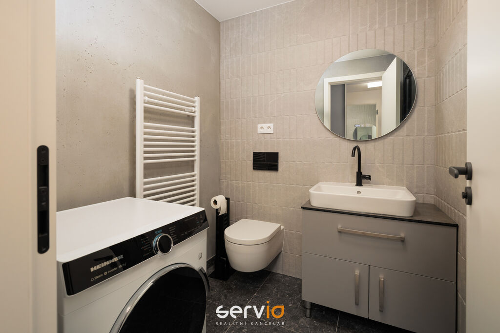 Byt se pronajímá kompletně zařízený: kuchyňská linka na míru s vestavěnými spotřebiči, el. trouba, dvojplotýnka, mikrovlnka, myčka, lednička a mrazák, TV, TV stolek, sedačka, která se dá rozložit na plnohodnotné dvojlůžko, stůl, židle, v koupelně - skříň pod umyvadlem, osvětlené zrcadlo v koupelně, pračka se sušičkou, vestavěná skříň, botník, venkovní nábytek na terase, dále má jednotka el. venkovní žaluzie.