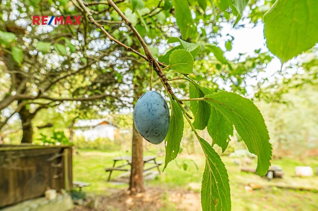 Na zahradě se nachází montovaná zahradní chata, skandinávské suché WC a je zde k dispozici sezónní voda. Pozemek je obklopen množstvím zeleně a ovocných stromů, které vytvářejí jedinečnou atmosféru – opravdovou oázu klidu a pohody.