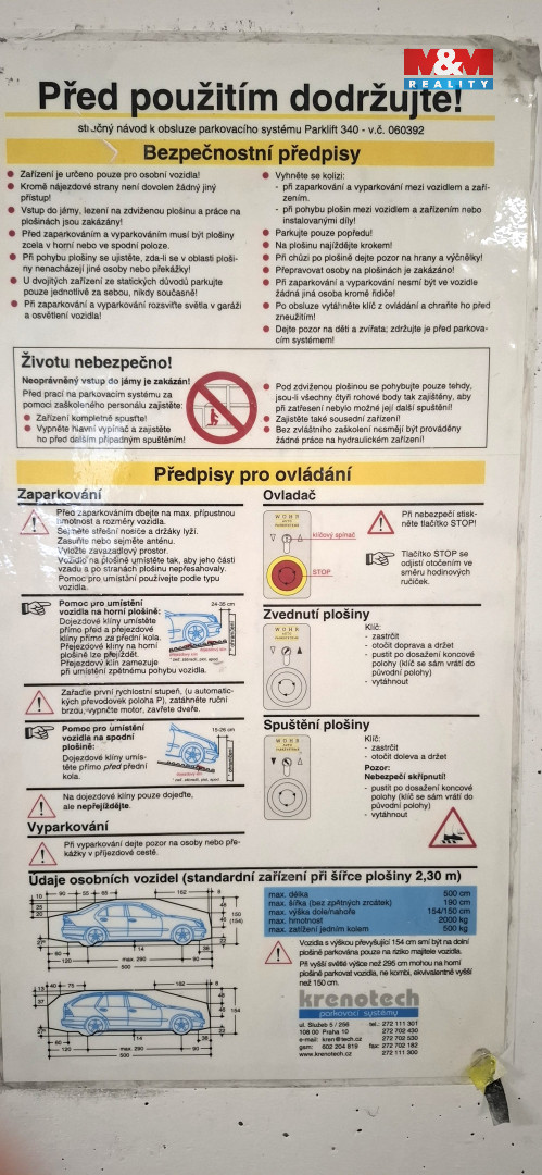 Parkovací místo je určeno pouze pro standardní osobní vozy – není vhodné pro velké SUV, dodávky ani robustní limuzíny.¨