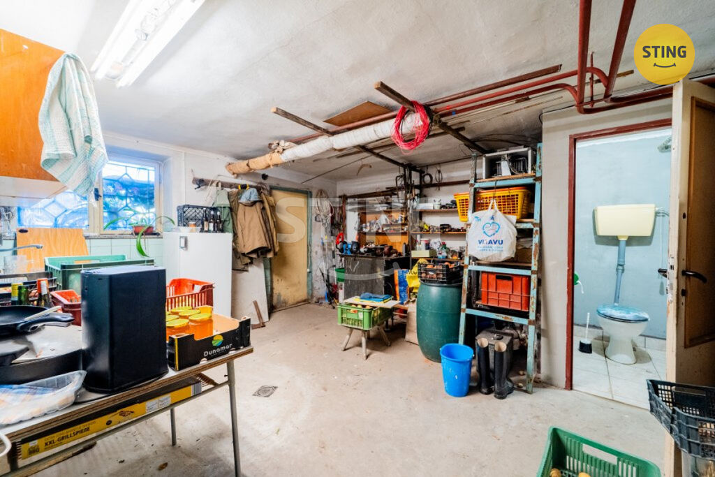 Celým domem vede pěkné ,prostorné terasové schodiště až dolů do sklepních prostorů, kde se nachází dílna,zahradní kuchyň s vodou i odpadem .Celý dům je podsklepený .Z těchto prostor se dá vejít do garáže a ven na přilehlou zahradu s udírnou a posezením .