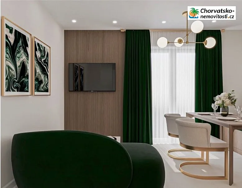 Chorvatsko-Nemovitosti.cz nabízí dvoupokojový apartmán (A3) o rozloze přibližně 40 m2 v přízemí novostavby ve městě Pag.