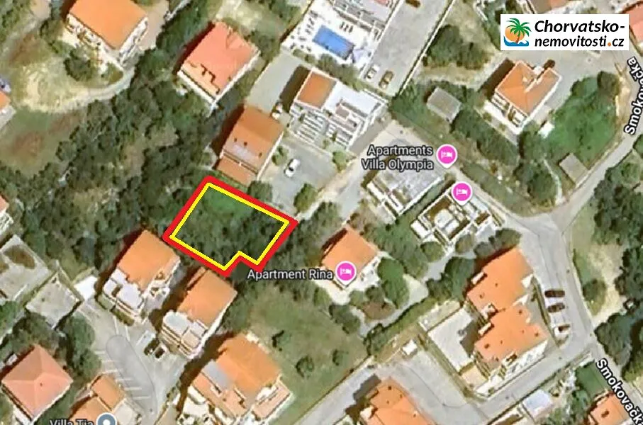 Prodává se stavební pozemek o rozloze 577 m2 nad centrem Novalje, ulice Smokovačka.