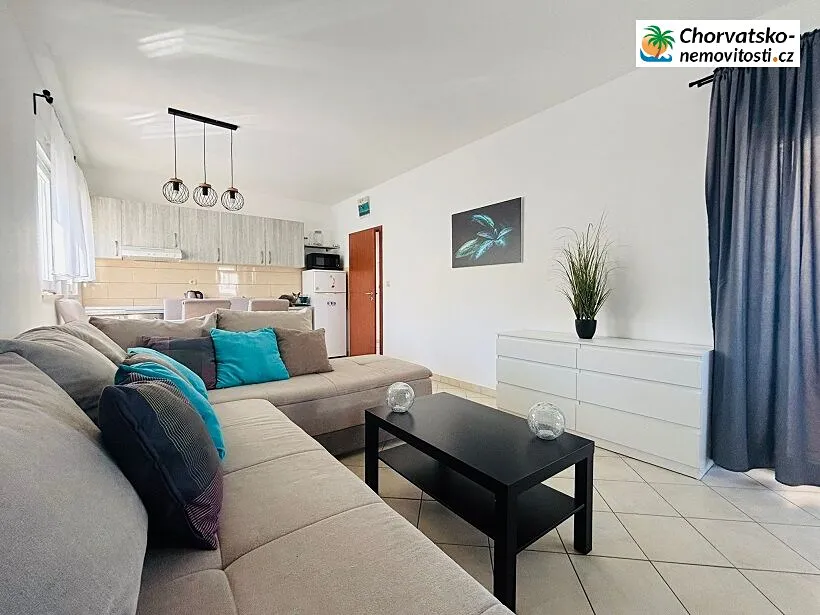 Chorvatsko-Nemovitosti.cz nabízí dvoupokojový byt (S4) s celkovou užitnou plochou 53,42 m2 v prvním patře bytového domu ve Staré Novalji