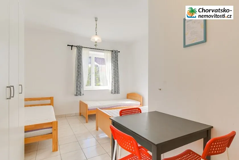 CHORVATSKO-NEMOVITOSTI.cz nabízí slunečný pětipokojový apartmán 109m2 v přízemí s prostornou zahradou a zelení. Apartmán S1 je klimatizovaný, o velikosti 109m2, kdy je dělen na 3 apartmány - 1 třípokojový apartmán a dvě garsoniéry. Má stejnou vzdálenost k moři a k centru města tj.250m. Nachází se v přízemí apartmánového domu. Před domem je parkovací místo, pro váš vůz. Nedaleko možnost nákupu potravin. Do města Novalja se dostanete pohodlnou kvalitní silnicí z trajektu nebo z mostu, spojující pevninu a ostrov Pag. Podrobně o apartmánu: