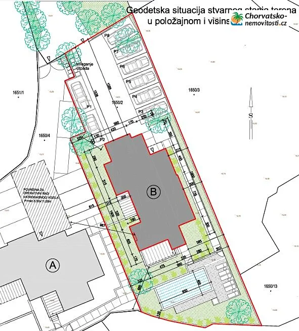 Před budovou je společný vyhřívaný a masážní bazén o rozměrech 8,5 x 4 metry.