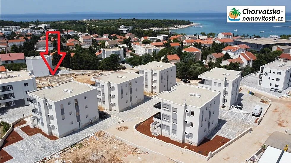 Prodej 3pokojového bytu (A2) v Novalji, výpočtová plocha 59,23 m2, ve druhém patře novostavby se společným bazénem.