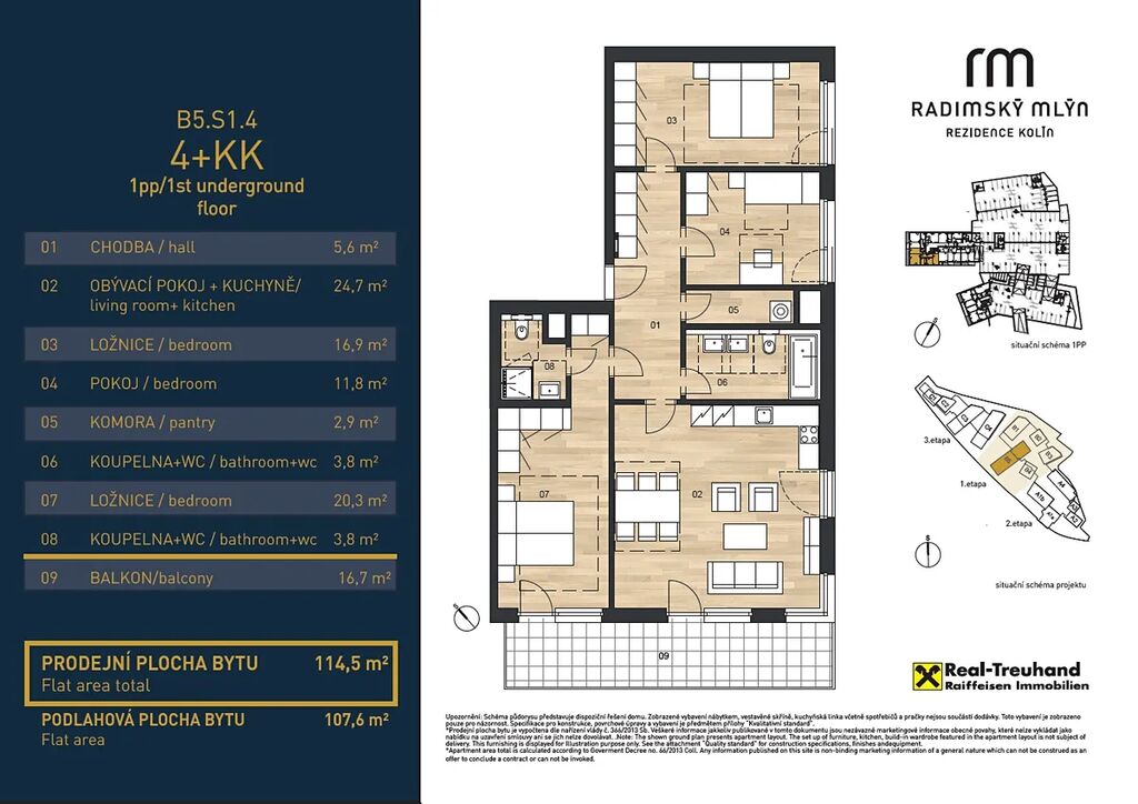 Aktuálně je ve výstavbě I. etapa projektu (prostřední domy B), která zahrnuje 104 bytů a ateliérů s dispozicemi 1kk – 4kk. Naprostá většina bytů má prostorný balkon, terasu či předzahrádku. Ke každému bytu je možné dokoupit sklep a parkovací stání v podzemní garáži.